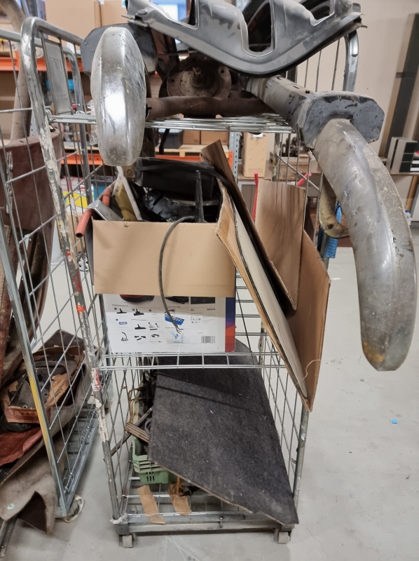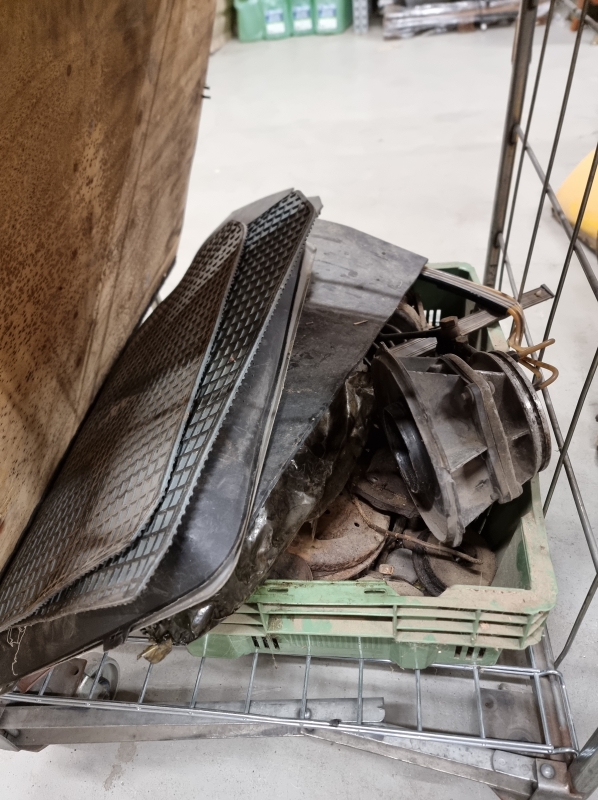 Moottorin osia, peltiosia, ovia yms.
