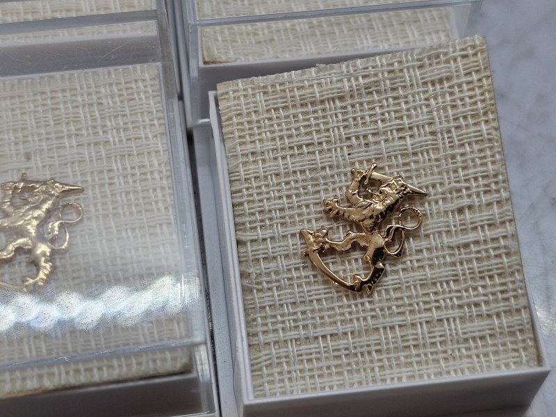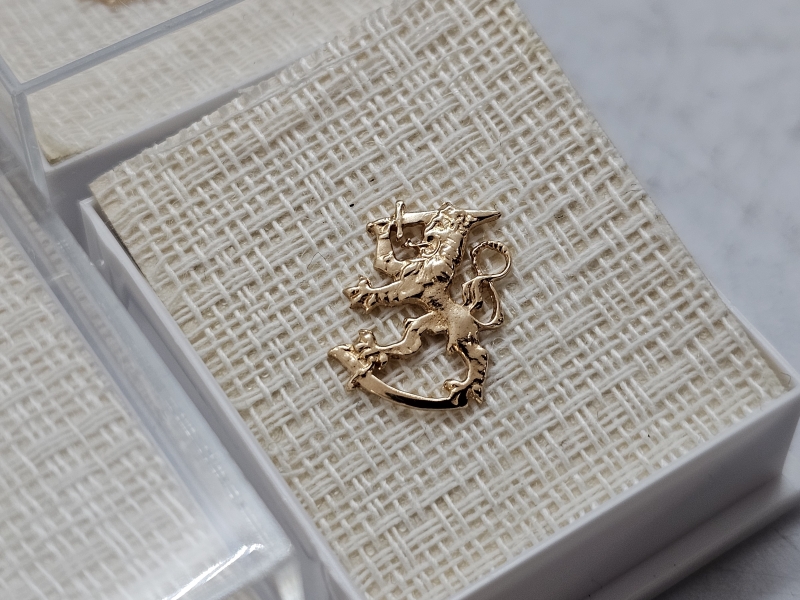 #1432 4kpl 14k kultaisia Suomi-leijona pinssejä, 2,3g