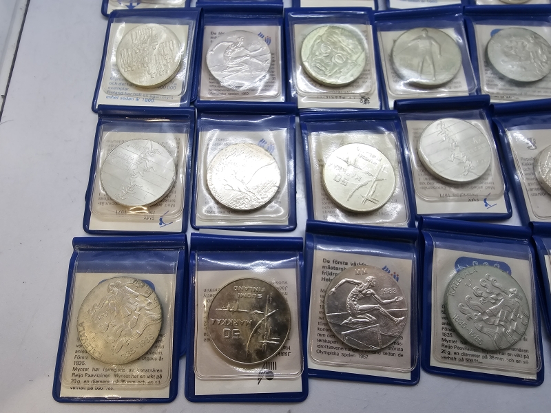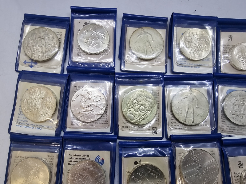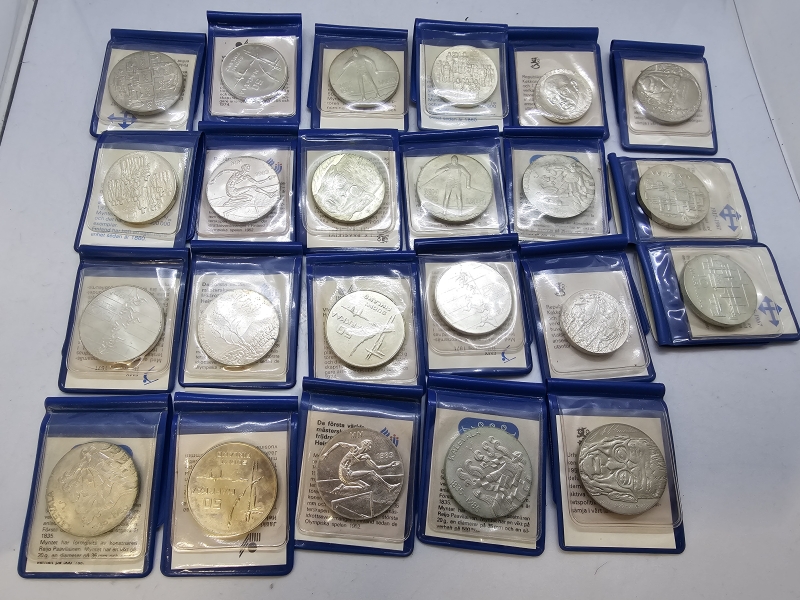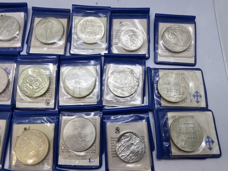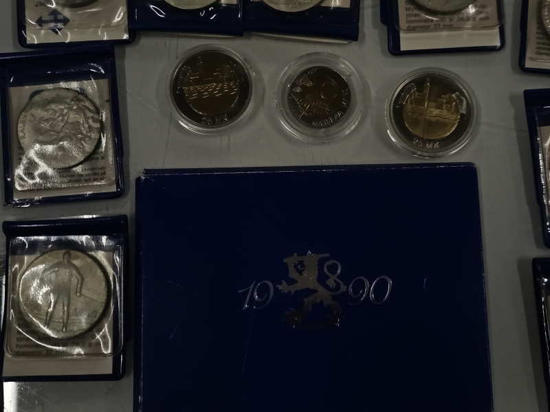 #1436 - 23kpl hopeisia juhlarahoja + rahasarja + 3kpl juhlarahoja