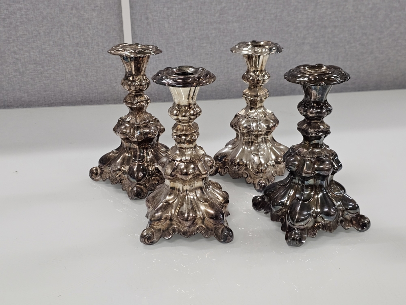 #1438 - 4kpl hopeisia Barokki -kynttilänjalkoja