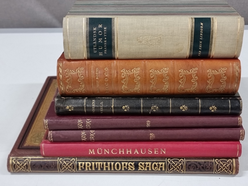 #2381 7kpl vanhoja ruotsinkielisiä kirjoja. Mm. Frithiofs Saga af E. Tegner 1888