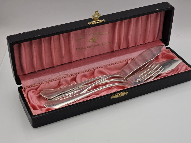 #1467 - Hopeiset chippendale kala-aterimet