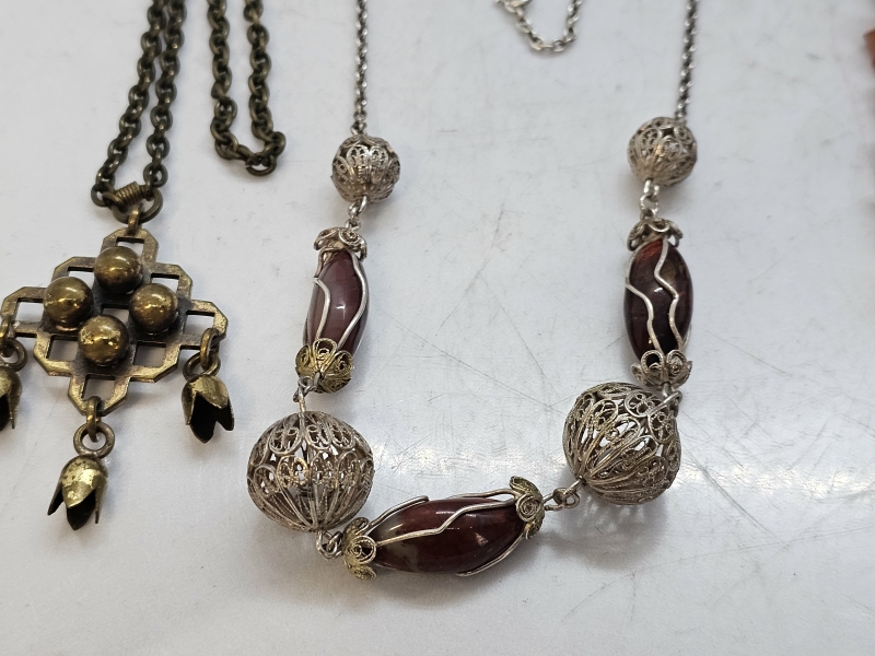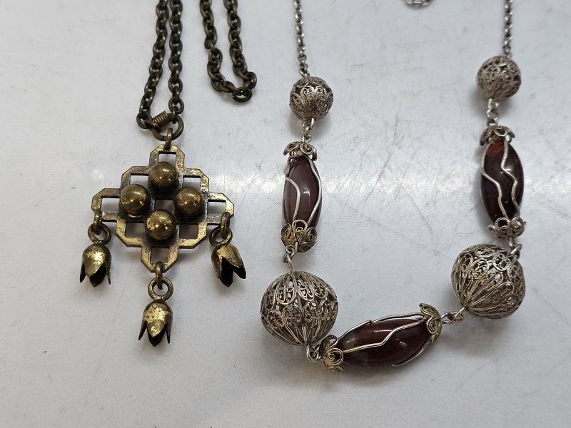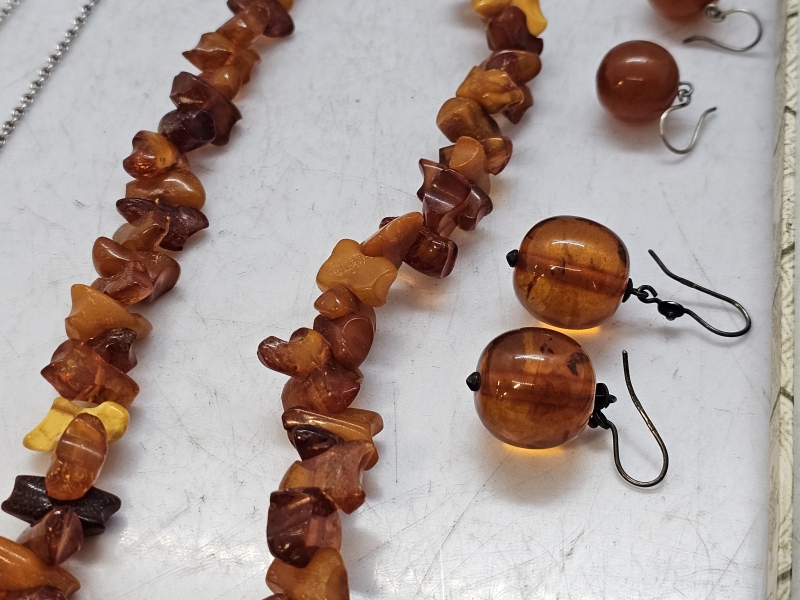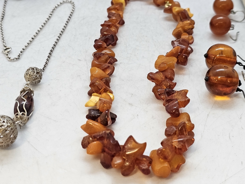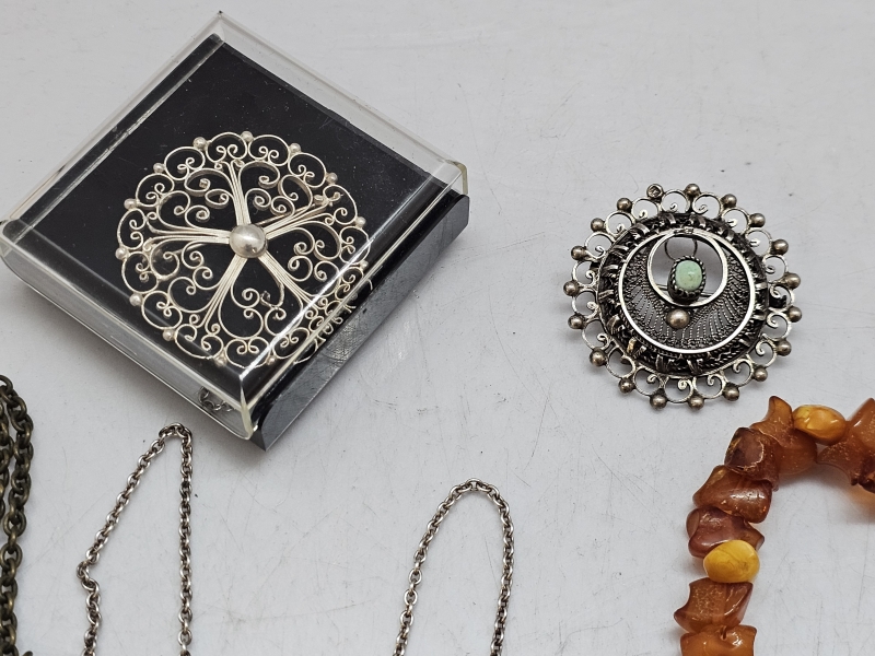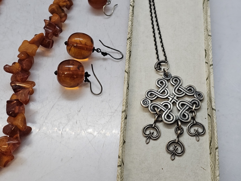 #1471 - Erä koruja: Mm. meripihkaa, hopeaa [mm. Kalevala koru]