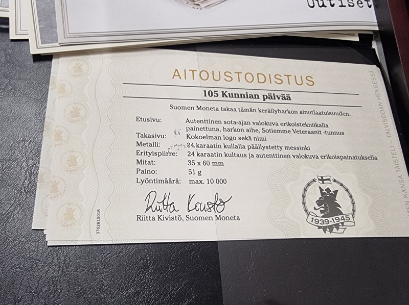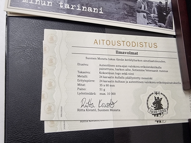Mukana aitoustodistukset, alkuperäislaatikoissa