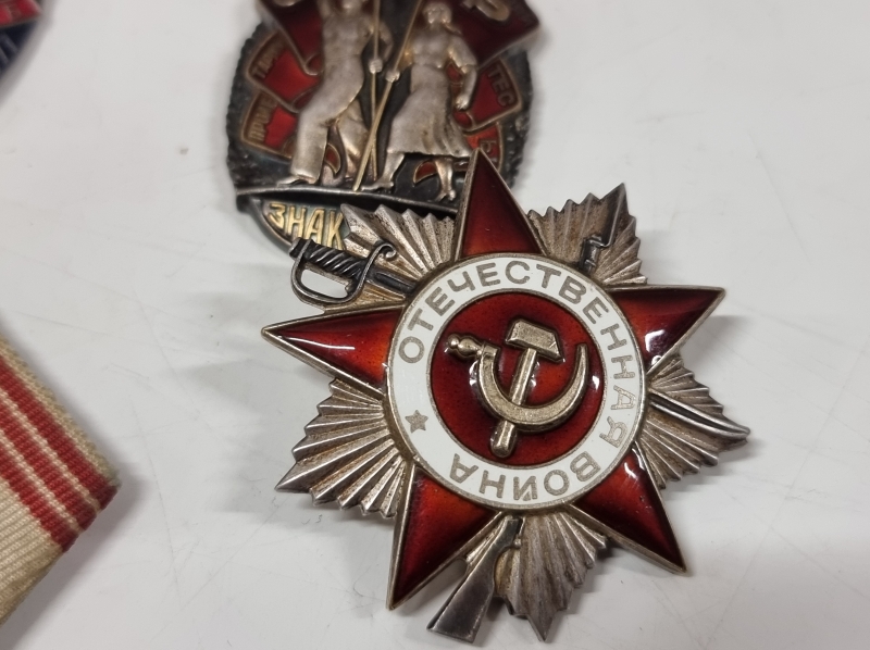#1640 - Neuvostoliittolaisia kunniamerkkejä: Mm. Isänmaallisen sodan kunniamerkki