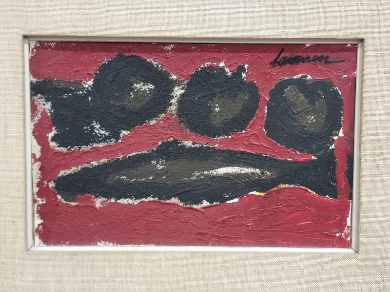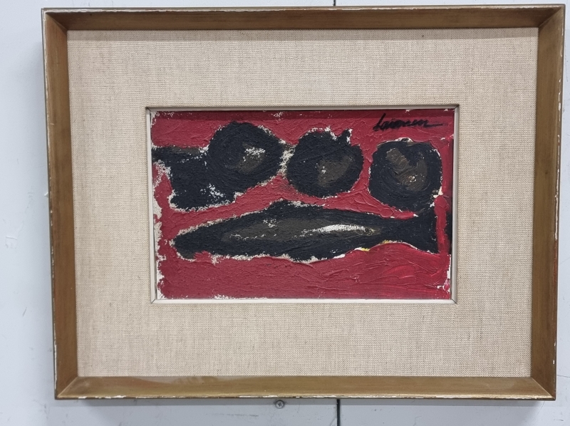 #1810 Öljyvärimaalaus, Ahti Lavonen, "Kala ja hedelmiä" 1958