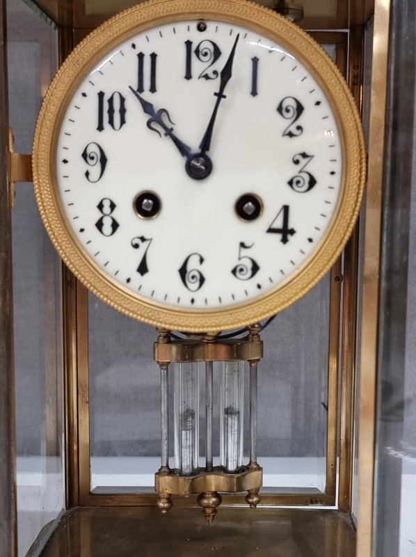 #1817 - Pöytäkello elohopeapuntarilla ja fasettihiotuilla laseilla.