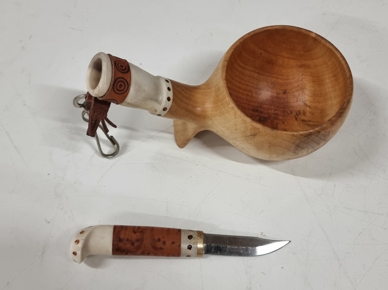 #1633 - Kuksa -puukko yhdistelmä, luuosilla.