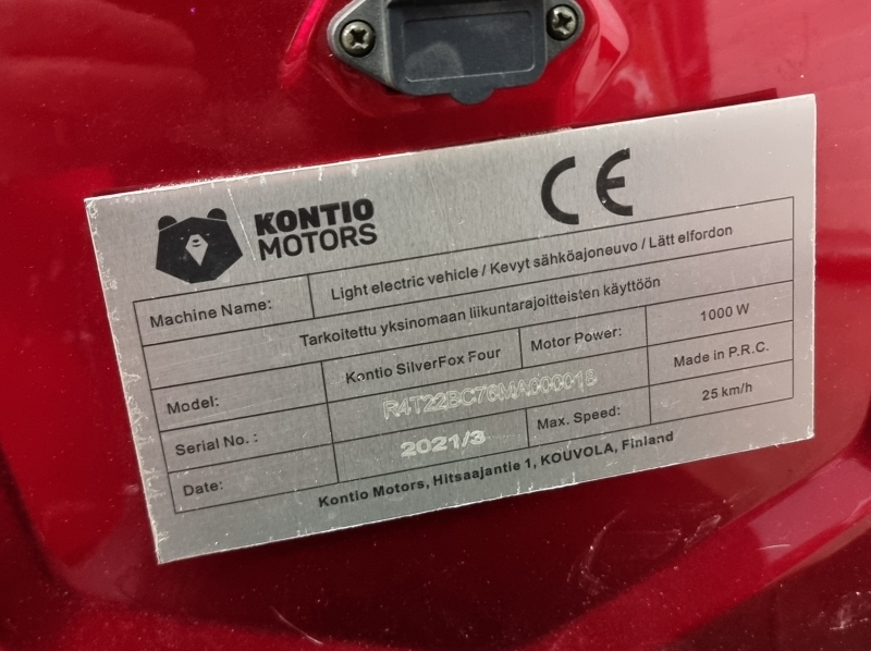 #1003 Kevyt sähköajoneuvo: Kontio SilverFox Four vm. 2022. Ei tarvitse erillistä ajokorttia eikä rekisteröintiä