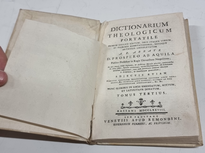 #2045 2kpl vanhoja latinankielisiä kirjoja: Rituale Romanum 1767 ja Dictionarum Theologicum Portatile 1778