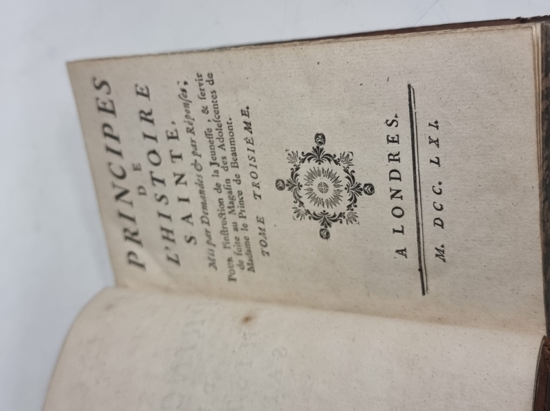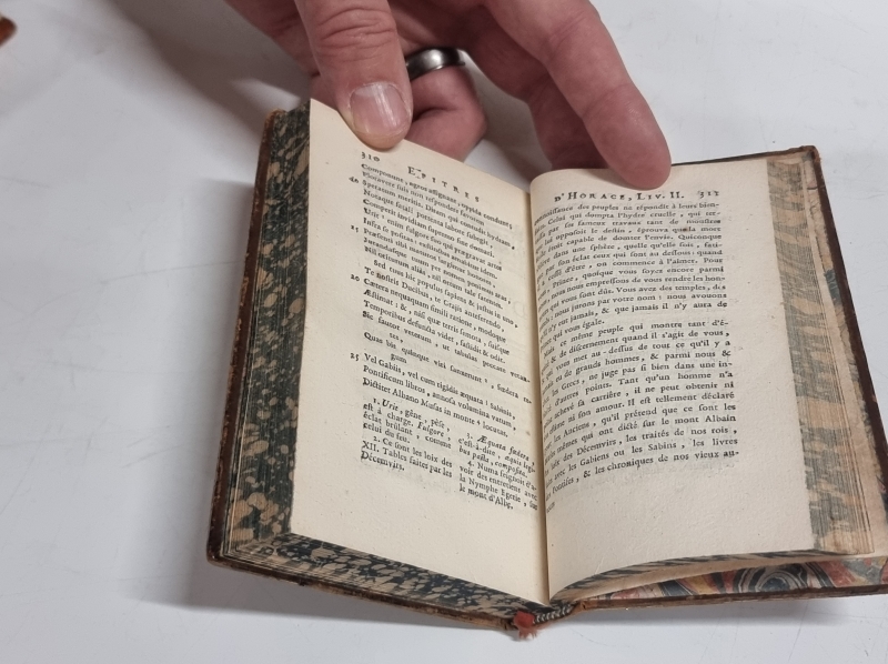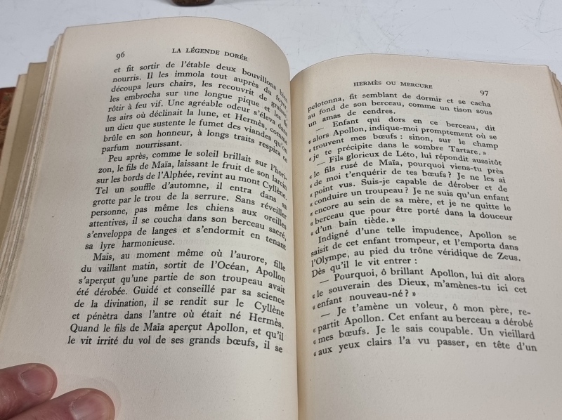 #2046 3 kpl vanhoja ranskankielisiä kirjoja: Les Poesies d'Horace1760, Principes de l'Historie Sainte 1761 ja La Legende Doree des Dieux et des Heros 1924