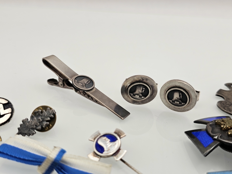 Osa hopeaa mm. kalvosinnapit ja solmiopidike