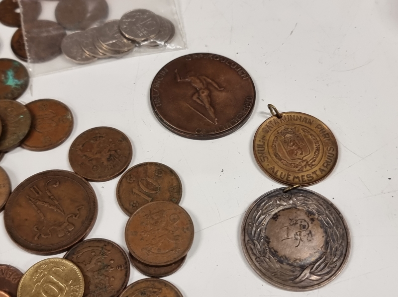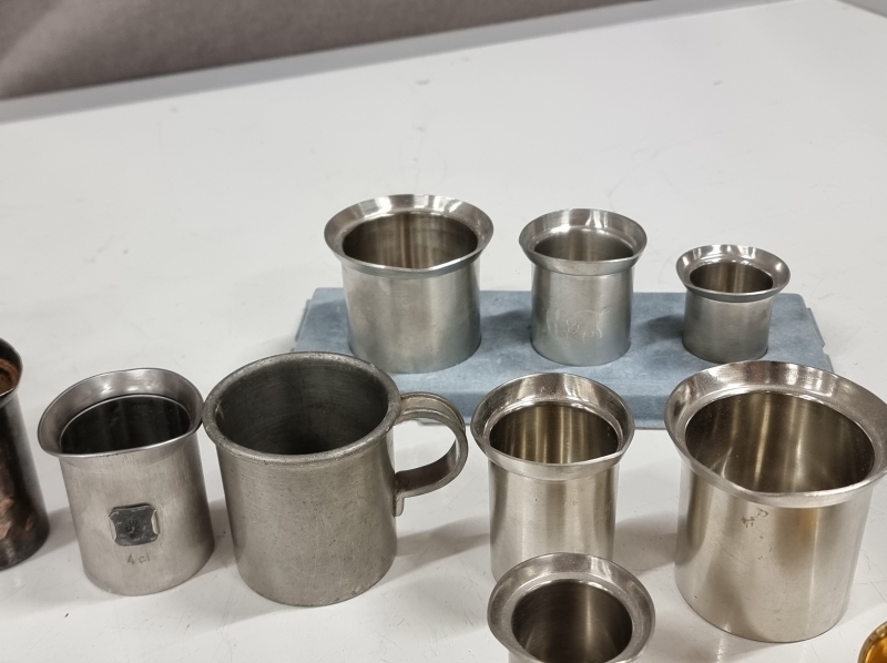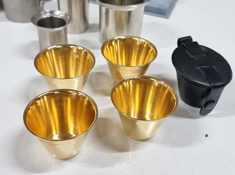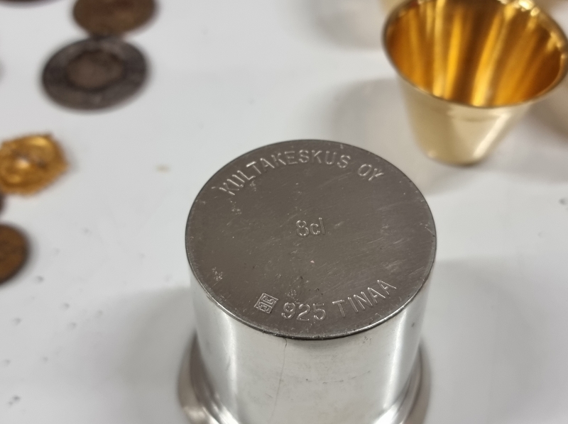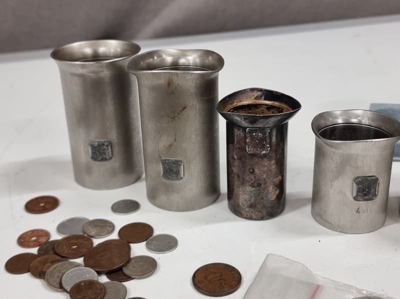#2408 Hyvä erä viinamittoja, kolikoita ym.