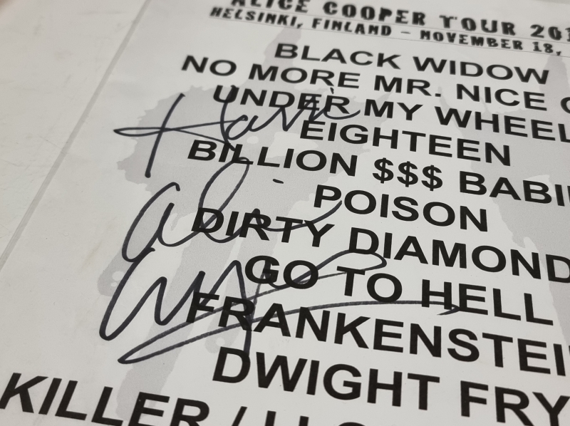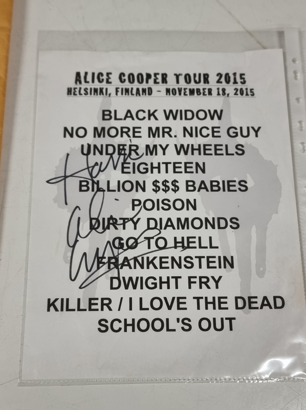 #1819 Alice Cooper Tour 2015 Helsinki soittolista nimikirjoituksilla