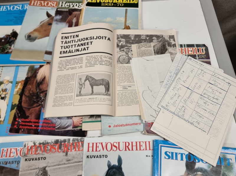 #2051 - Vanhoja hevosurheilulehtiä ja jalostuskuvastoja.