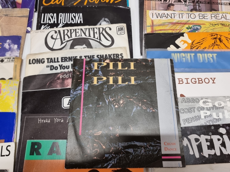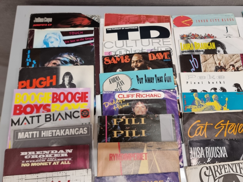 #2164 - Hyvä erä single -levyjä, mm. Tuliapina, Pullopojat, Billy Joel, Carpenters