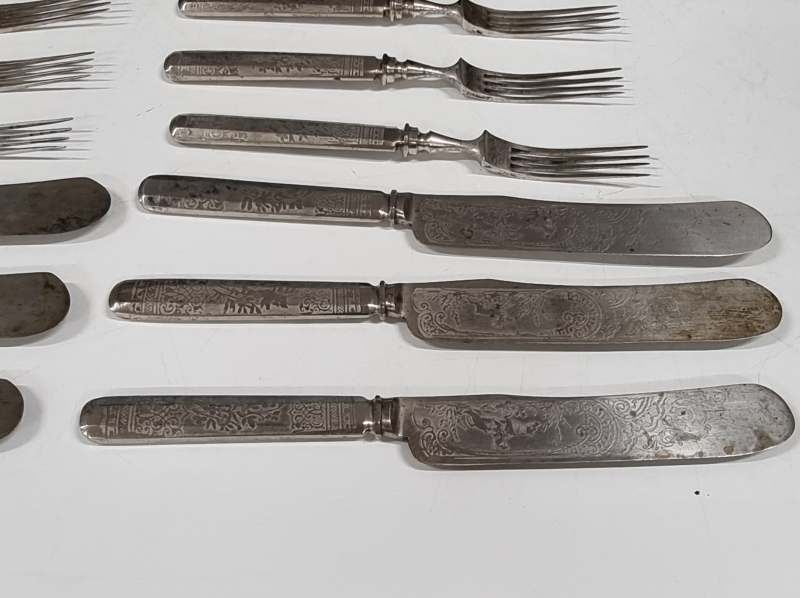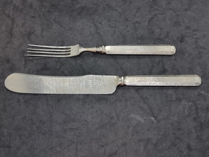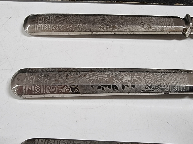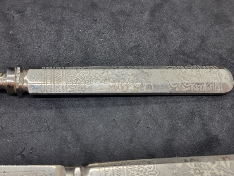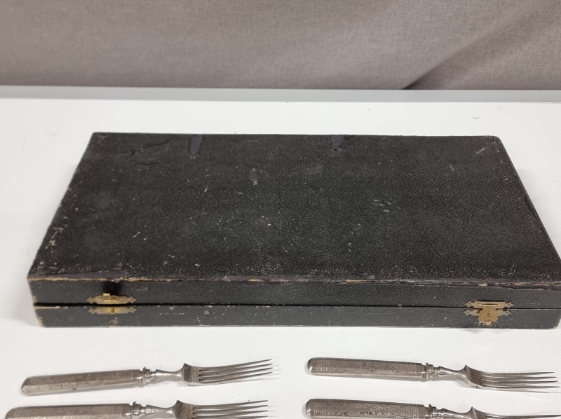 #2415 Vanhat hopeoidut aterimet laatikossa.