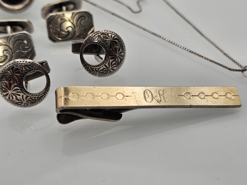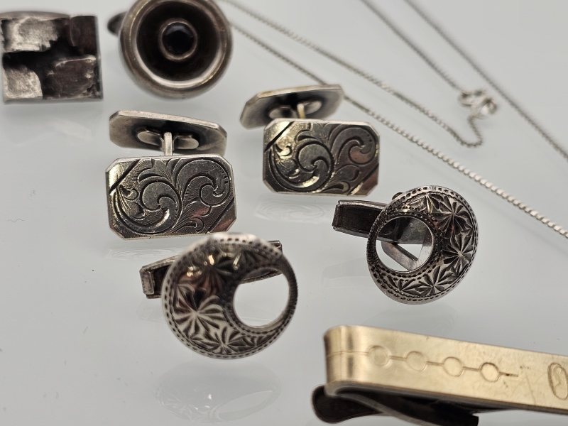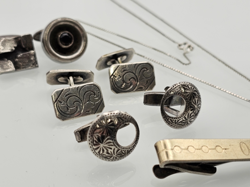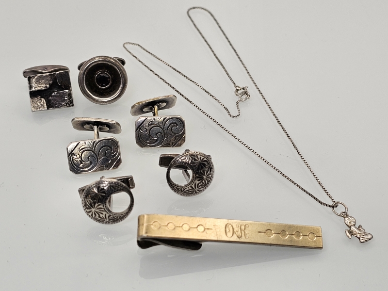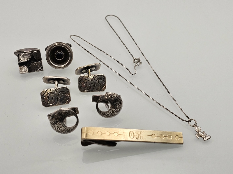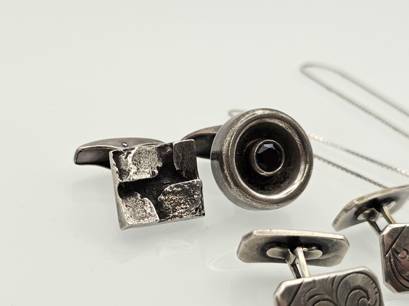 #1552 Erä hopeakoruja: Mm. kalvosinnappeja