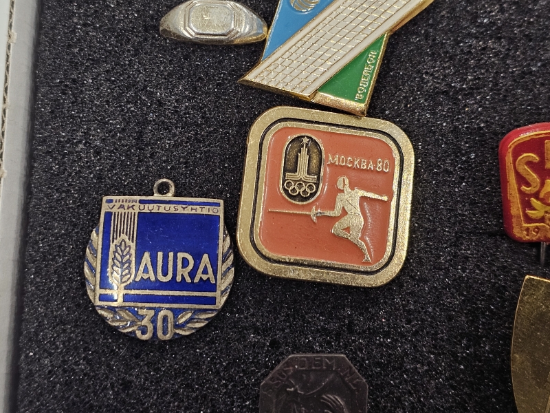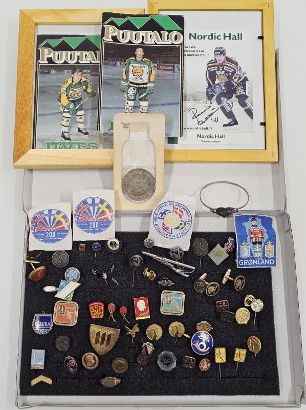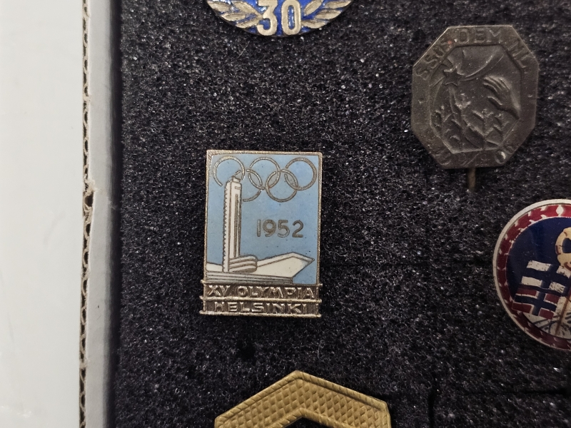 #2053 - Erä merkkejä: Mm. Helsingin olympialaiset 1952 merkki, Ilves-tavaraa ym.