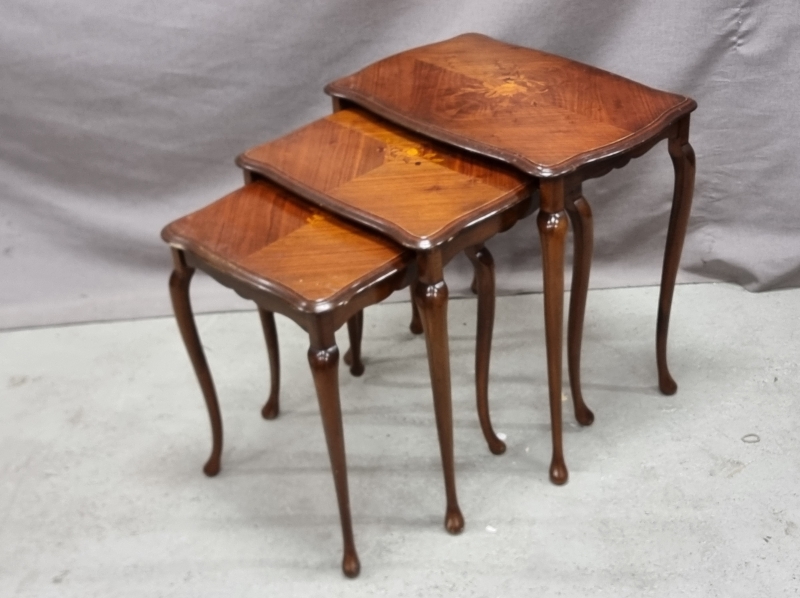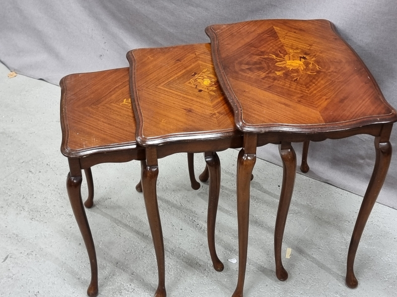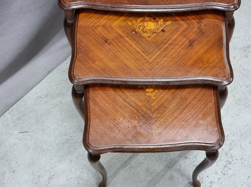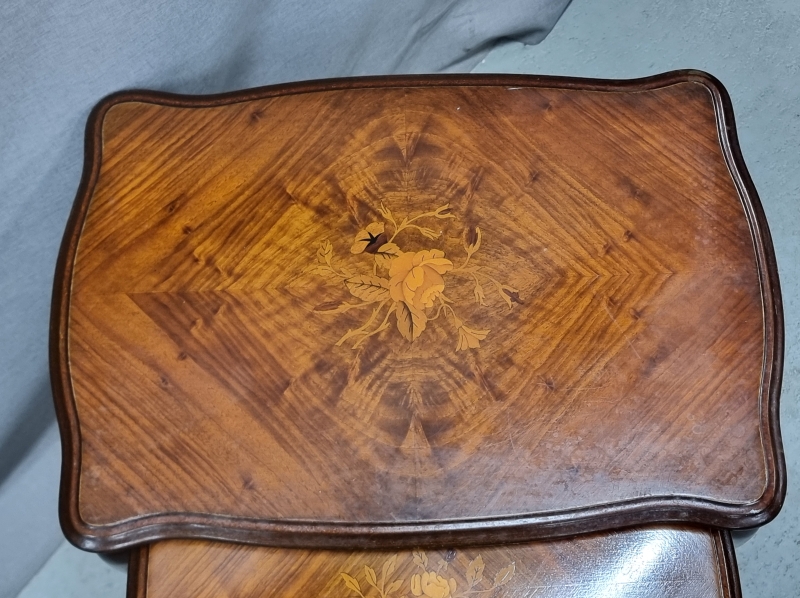 #1963 - Sarjapöytä intarsiaupotteilla.