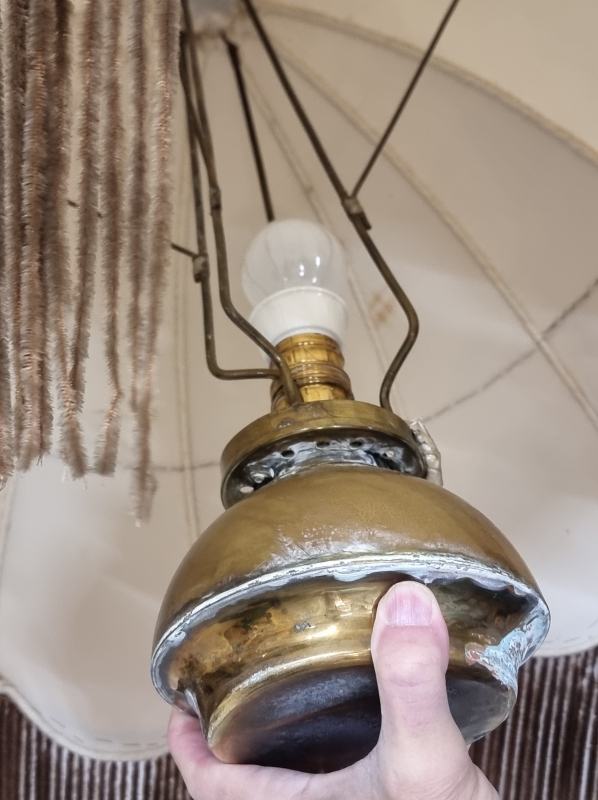 #1821 1900-luvun alun messinkirunkoinen sähköistetty öljyvalaisin. Leima "Christianstad"