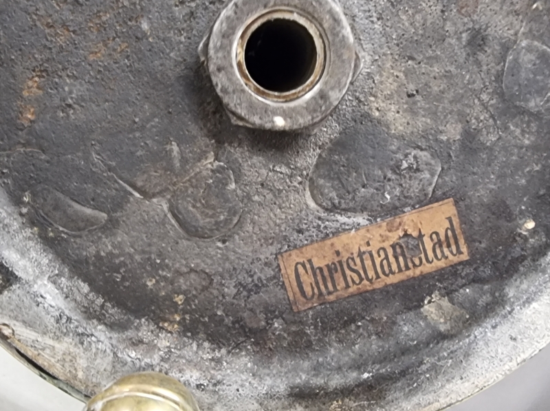 #1821 - 1900-luvun alun messinkirunkoinen sähköistetty öljyvalaisin. Leima "Christianstad"