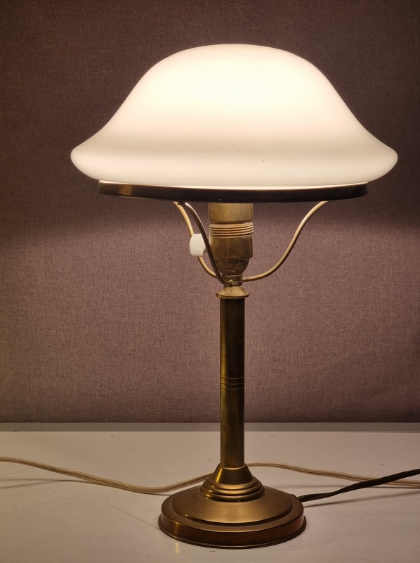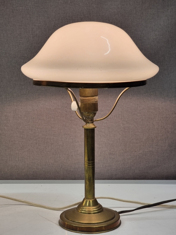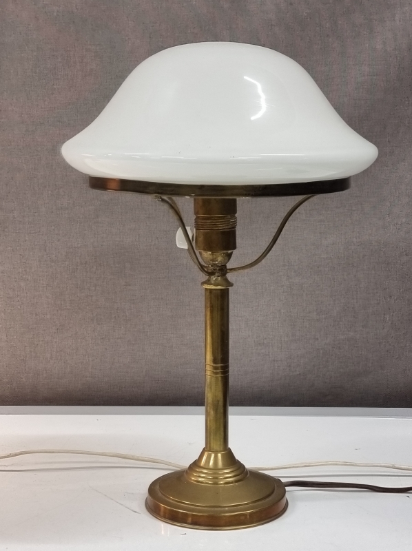 #1969 1900-luvun alun pöytävalaisin messinkirungolla ja lasikuvulla
