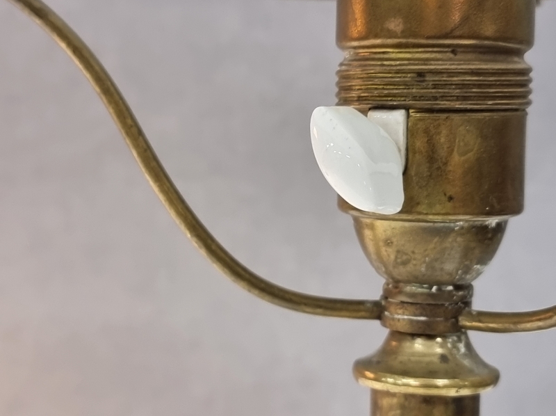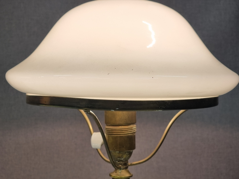 #1969 - 1900-luvun alun pöytävalaisin messinkirungolla ja lasikuvulla