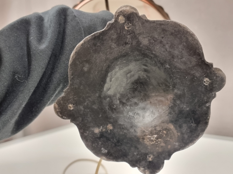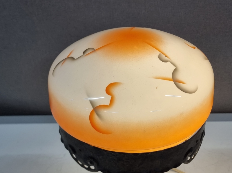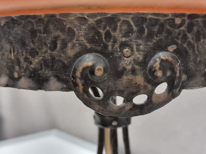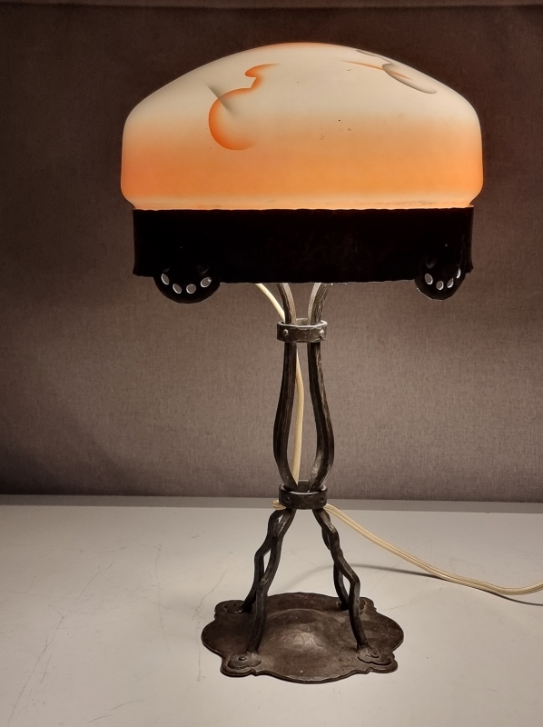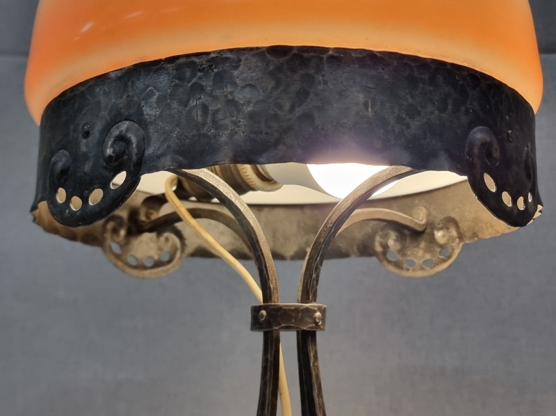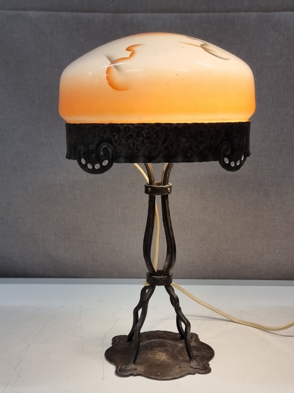 #1970 - 1900-luvun alun jugend -tyylinen pöytävalaisin takorautaisella rungolla ja lasikuvulla