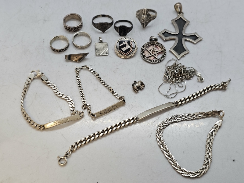 #1543 Erä hopeakoruja: Mm. sormuksia, riipuksia ym.