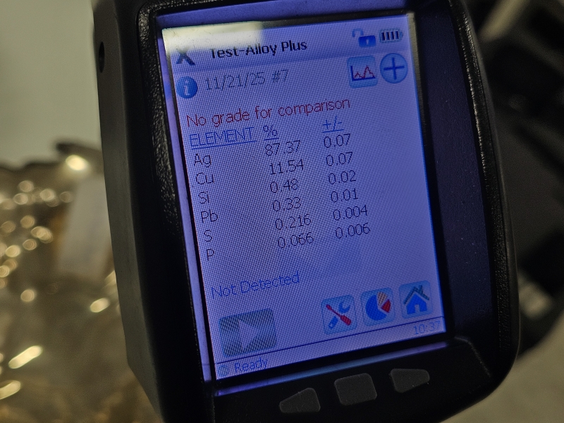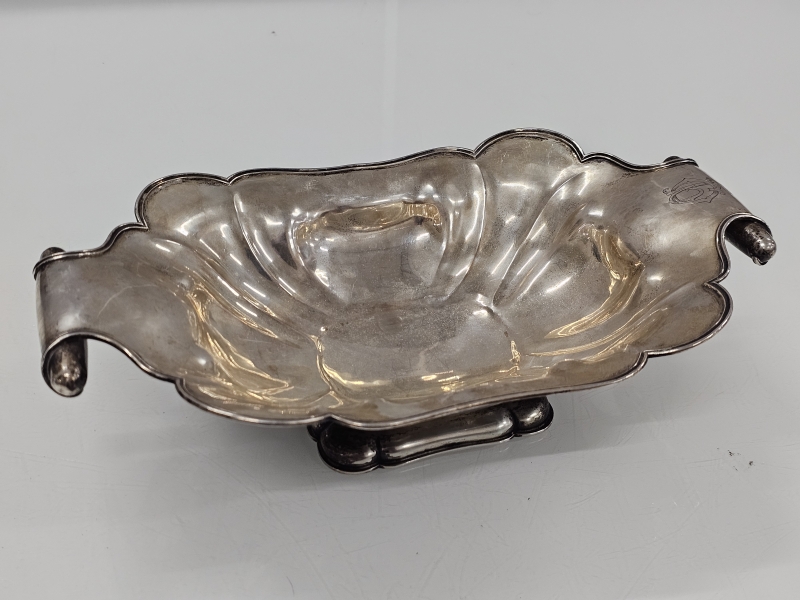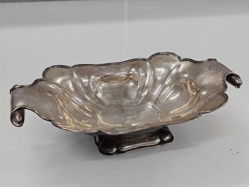 Paino 585g. Ei hopean leimoja, testattu XRF-laitteella noin 870/1000 hopeaksi. P: 34cm