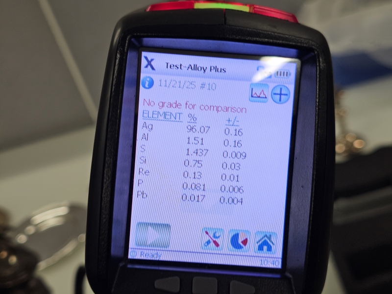 Ei hopean leimoja, testattu XRF-laitteella hopeaksi. Paino 1350g. Kannun k: 23,5cm