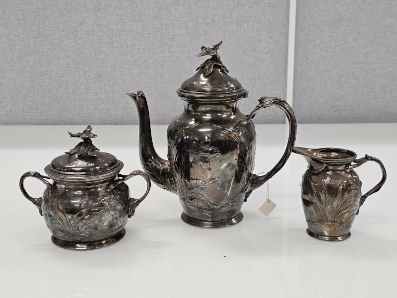 #1557 Hopeinen kahvikalusto, Dupper & Bernhold Esslingen 1900-l. alku