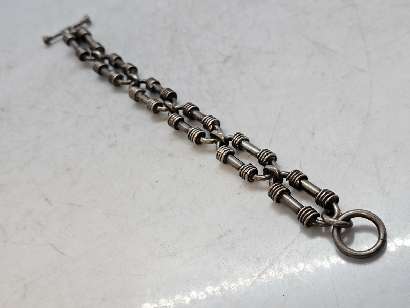 Paino 78g. Ei leimoja, testattu XRF-laitteella hopeaksi. Pituus 23cm