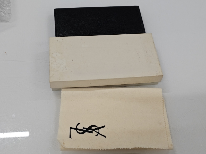 Burberryyn dustbag, YSL:aan liina ja laatikko. Leveys 10cm / 19cm.