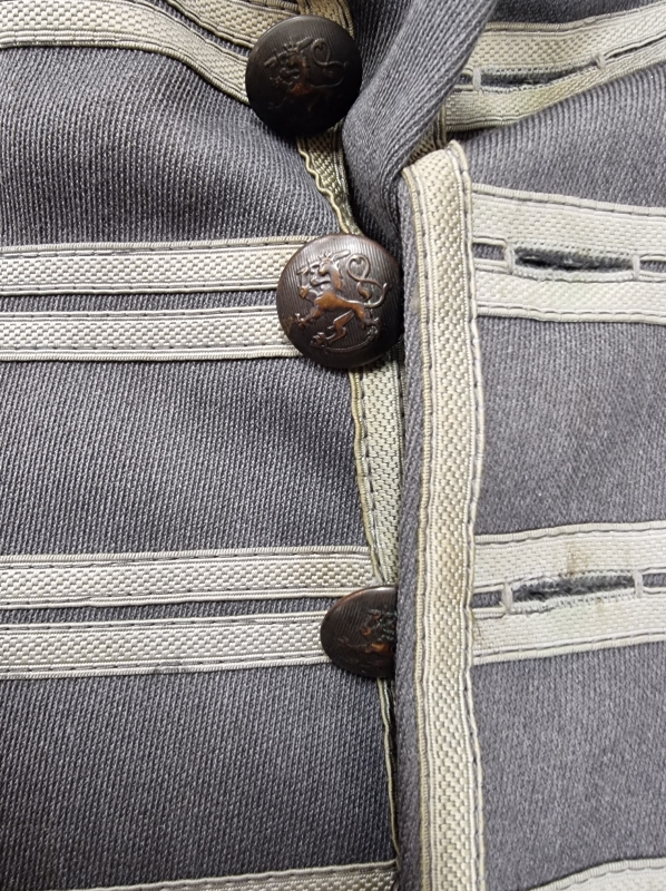 Toisen olkapoletin nappi puuttuu.