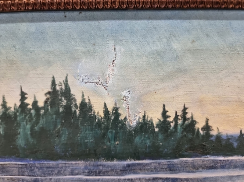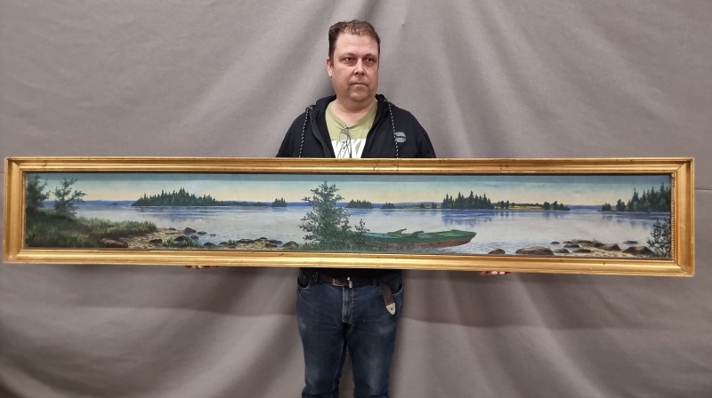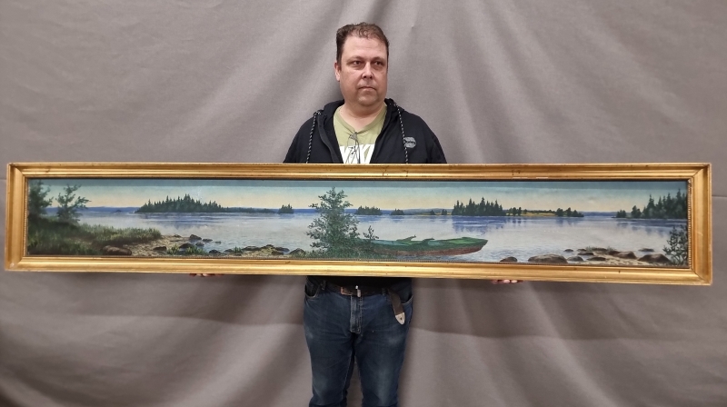 Ei signeerattu, korjauksia. Kehyksineen 222cm x 36cm