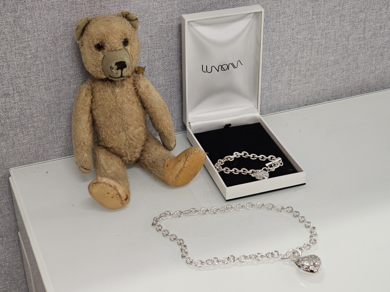 #2198 - Sydänkorut ja vanha nalle mahdollisesti Steiff
