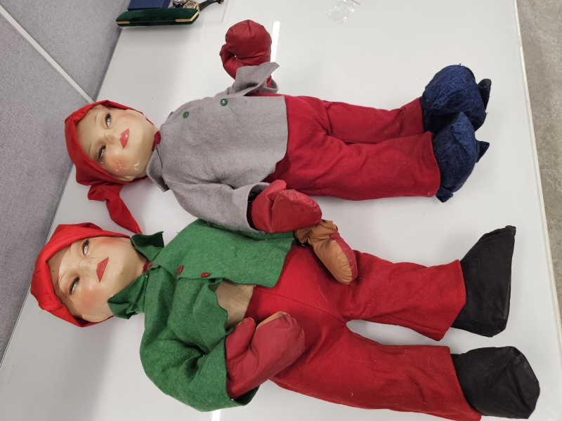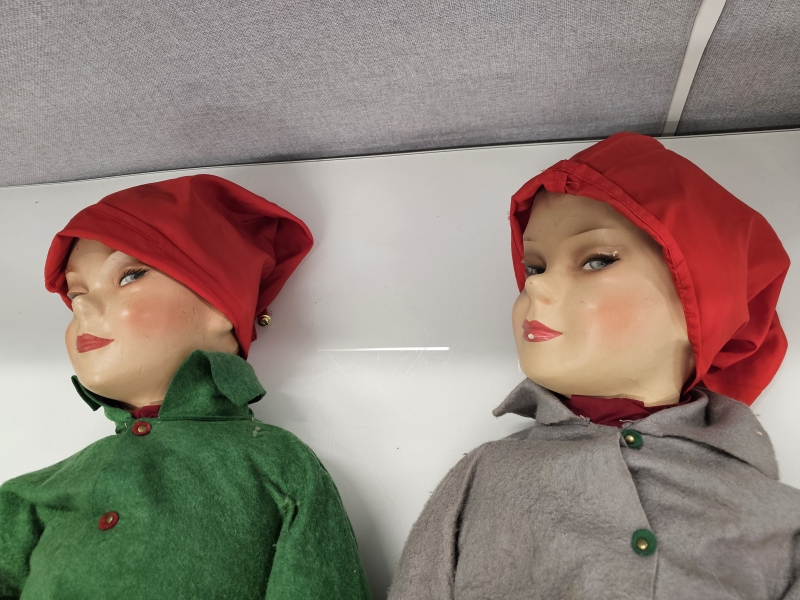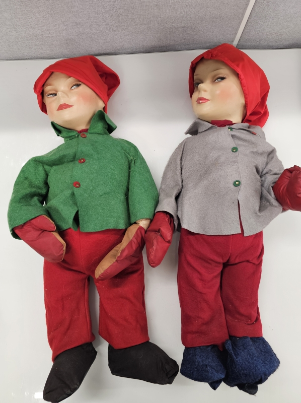 #2293 2kpl vanhoja isoja 1950-l. joulutonttuja *KATSO HISTORIA LISÄTIEDOISTA*