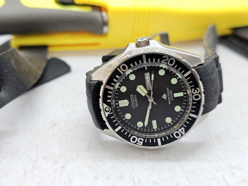#1606 Mil-Tec sukeltajan puukko ja Citizen Promaster sukelluskello