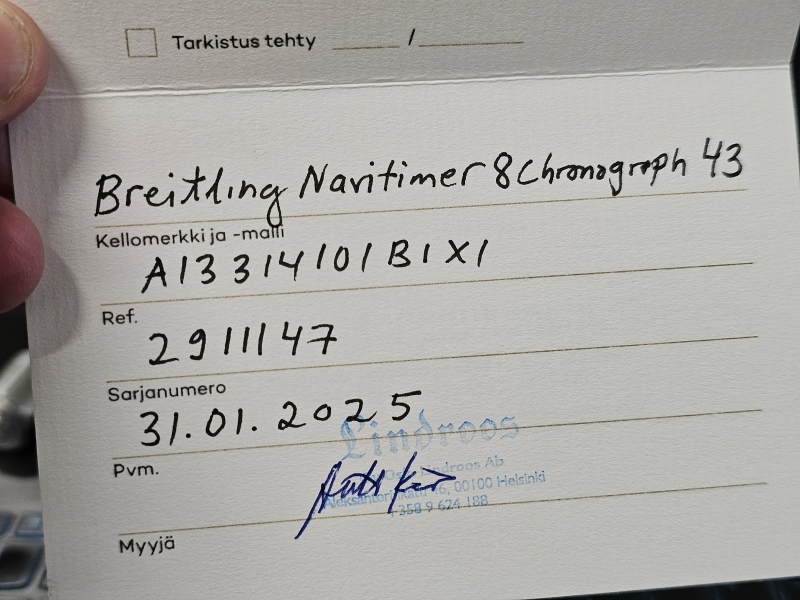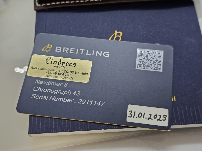 #1601 Rannekello: Breitling Navitimer 8 Chronograph 43, käyttämätön full-set