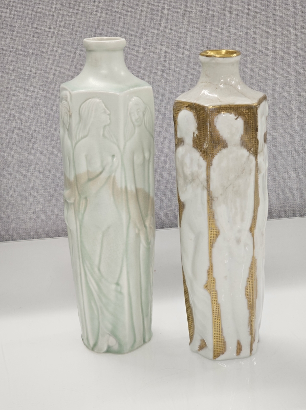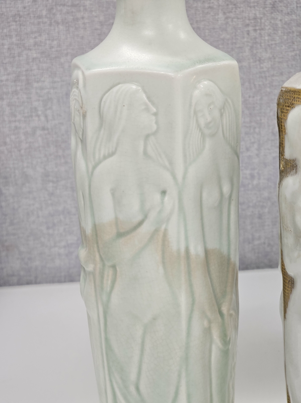 #607 2kpl Tyra Lundgren Arabia reliefimaljakoita joista toisessa liimauksia
