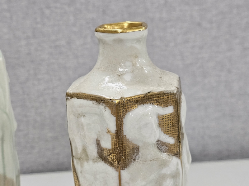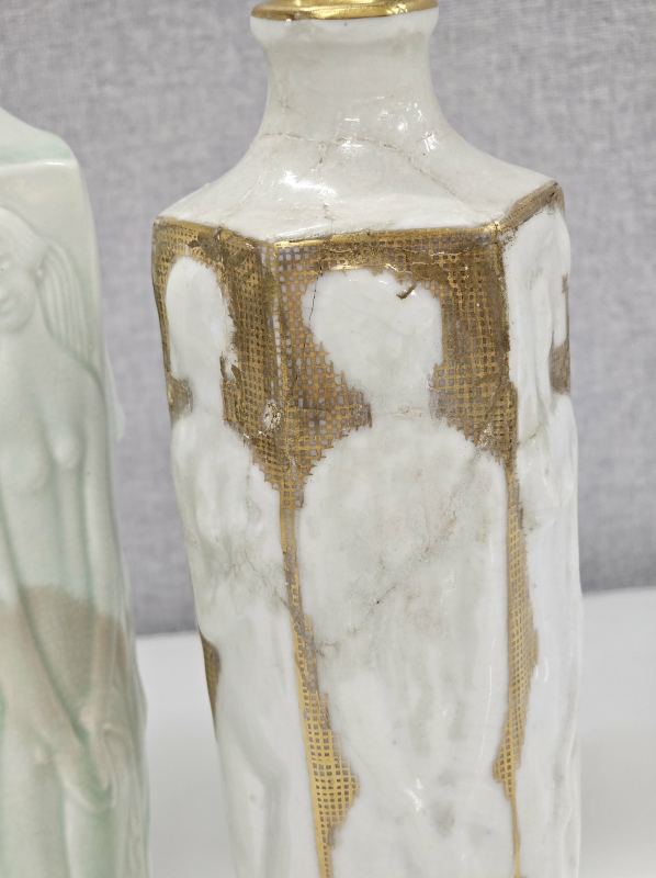 Toinen hyväkuntoinen mutta ei Arabia leimaa, toisessa runsaita liimauksia. K: 28cm / 29cm