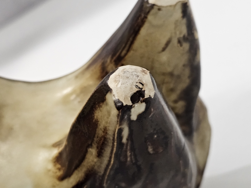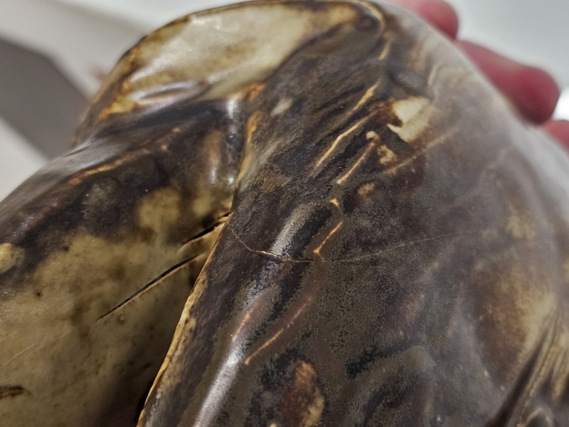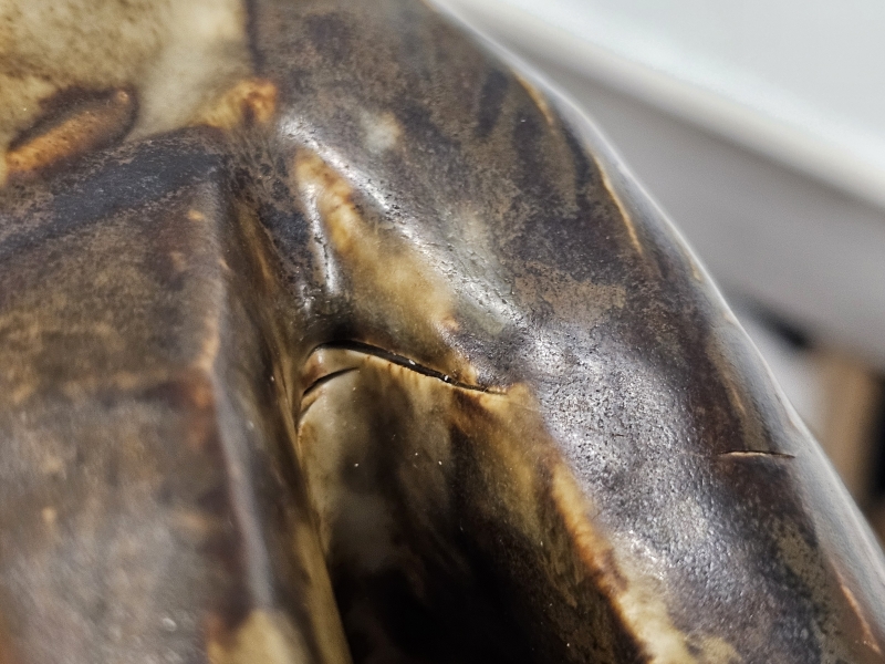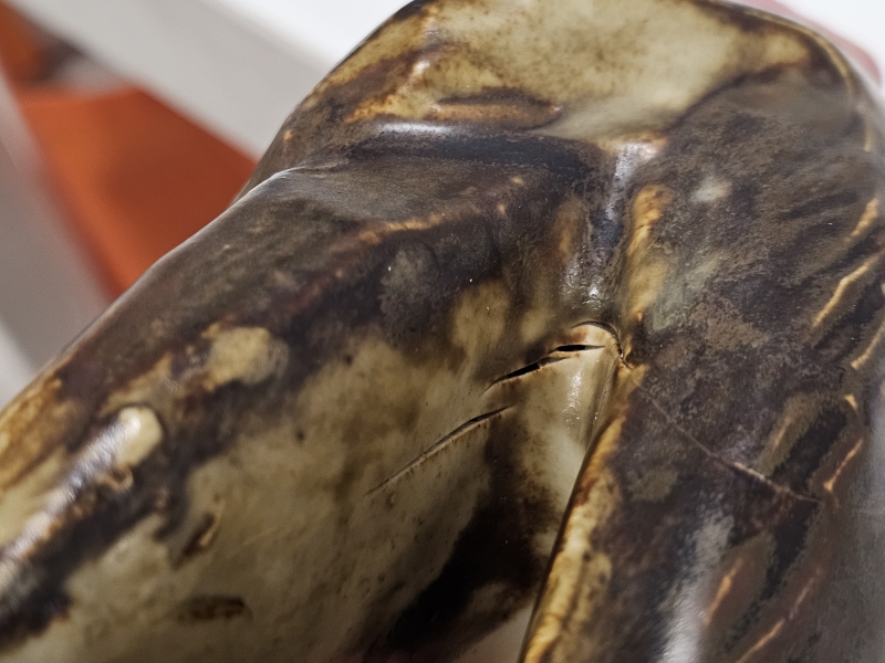 Takaosassa tekovaiheessa tullutta hiushalkeamaa. P: 31cm, k: 25cm