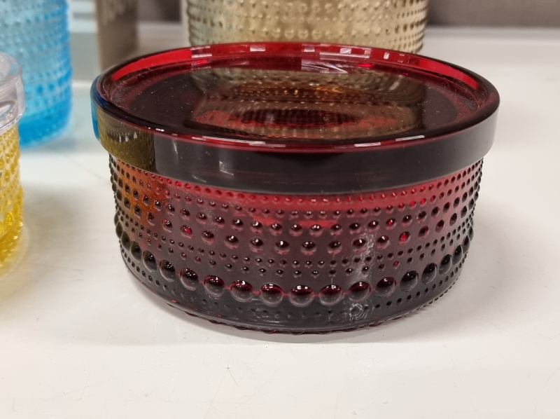 #151 6kpl Kastehelmi purkkeja, mm. karpalonpunainen