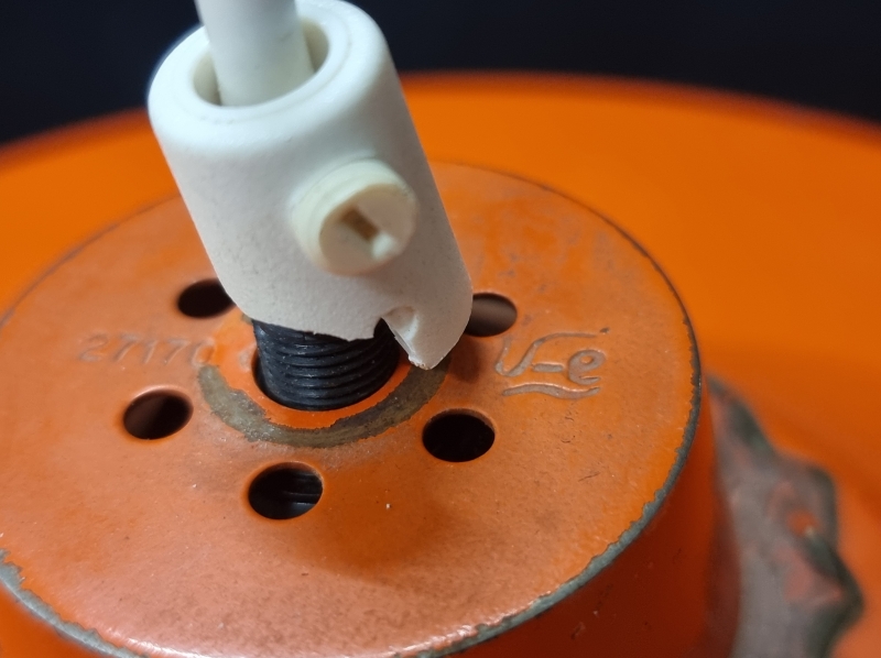 Isomman johdon kiinnike murtunut. Halkaisijat 31cm ja 21cm.