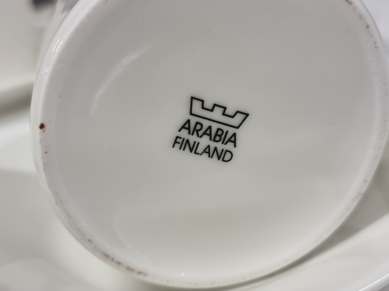 #611 9+10 kpl Arabia Birger Kaipiainen "Eeva" -kahvikuppeja ja tasseja