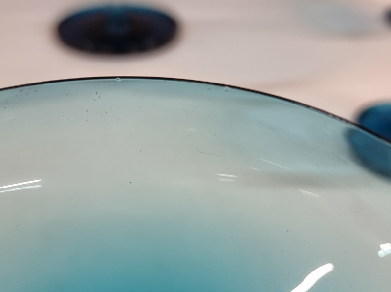 Yhdessä lasissa reunavikoja. Maljan halkaisija 25cm