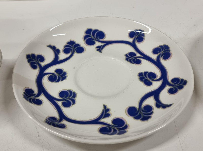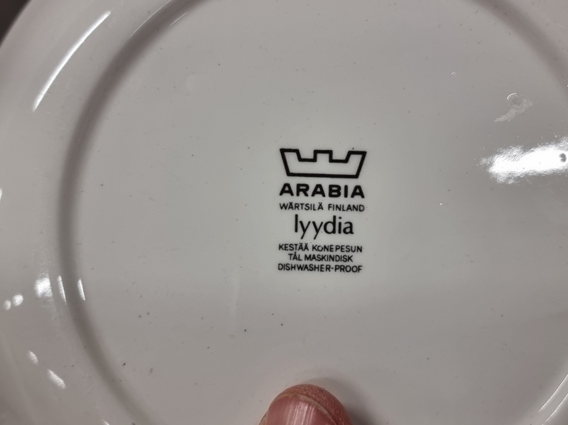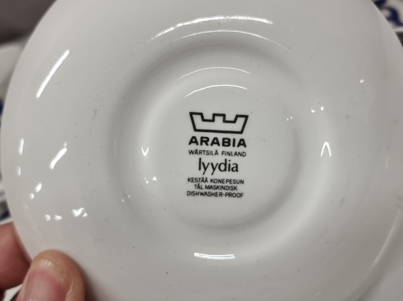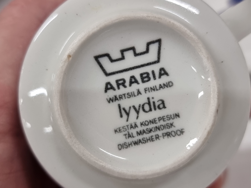 #614 3kpl Arabia Lyydia kahvikuppeja tasseineen ja pullalautasineen