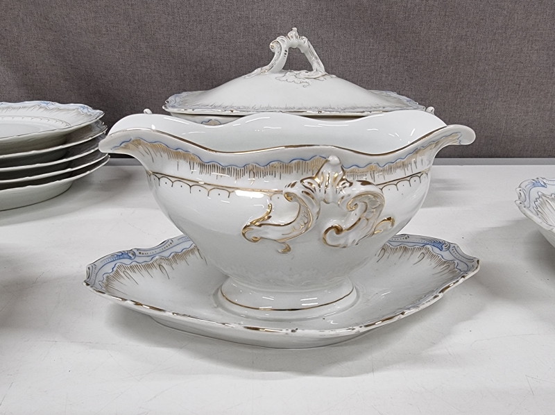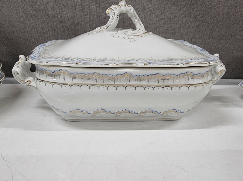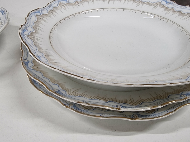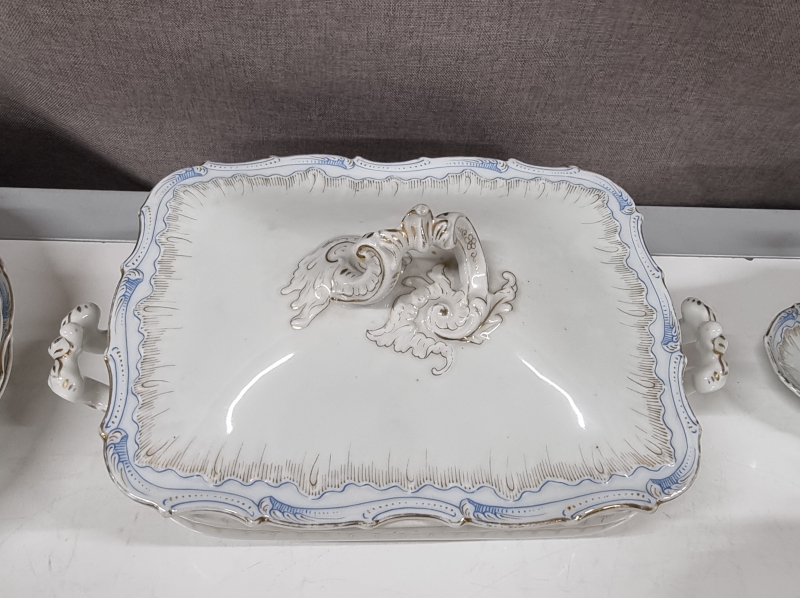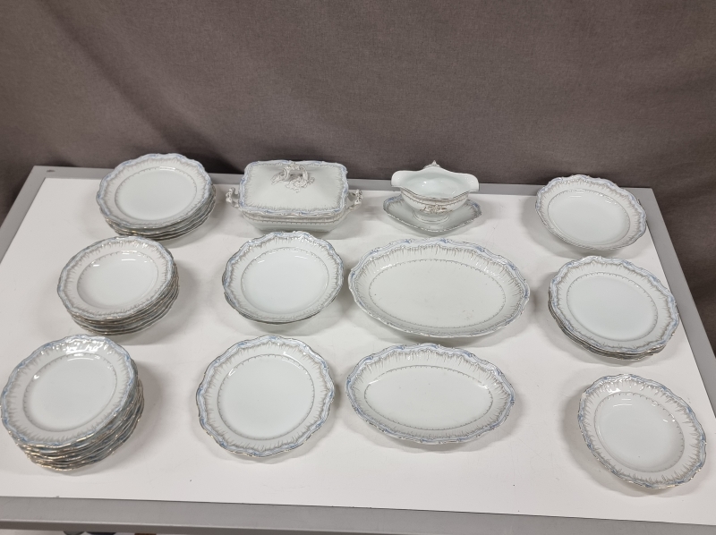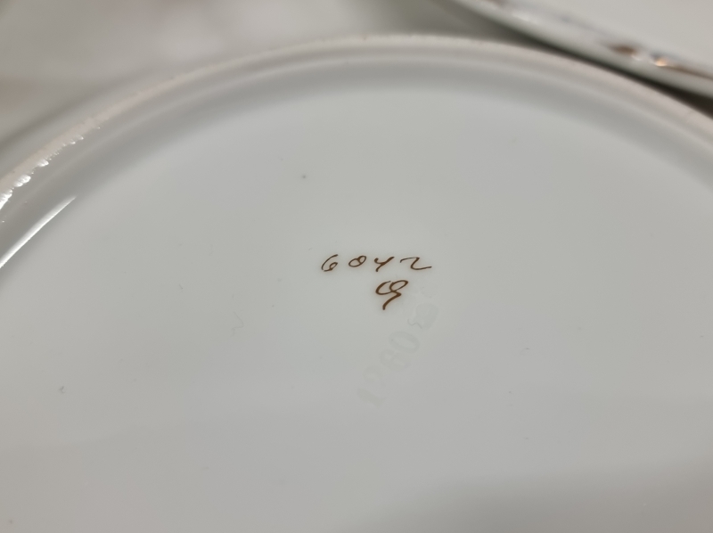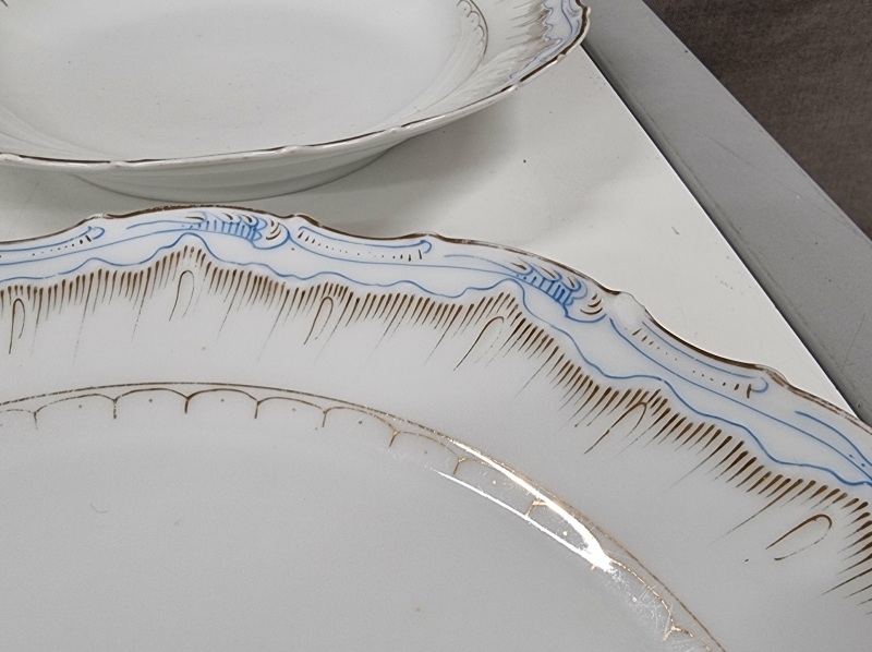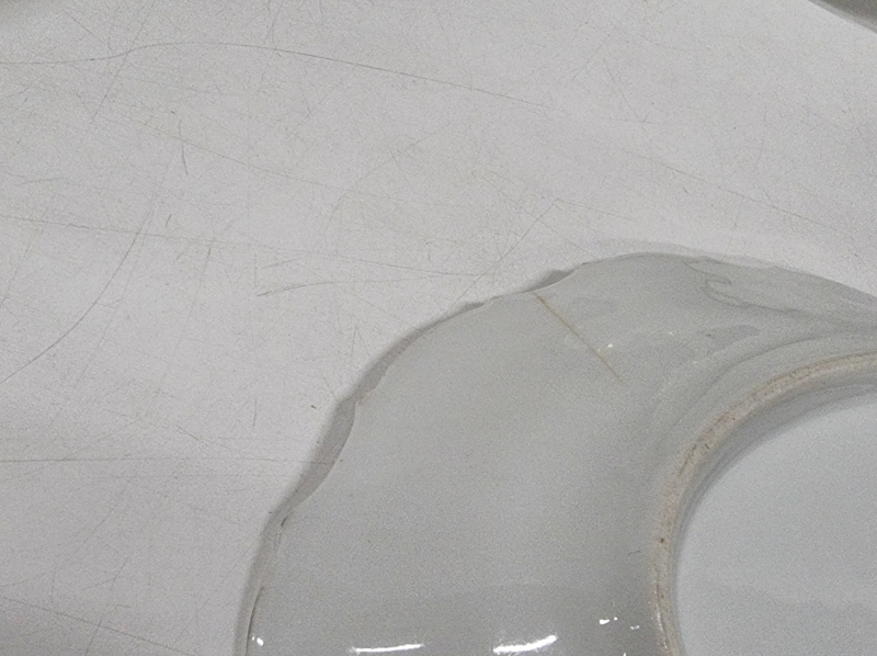 Kulumaa ja vikoja. Kuvassa oikealla olevissa paloja pois. Isoimman tarjoilulautasen pituus 37cm